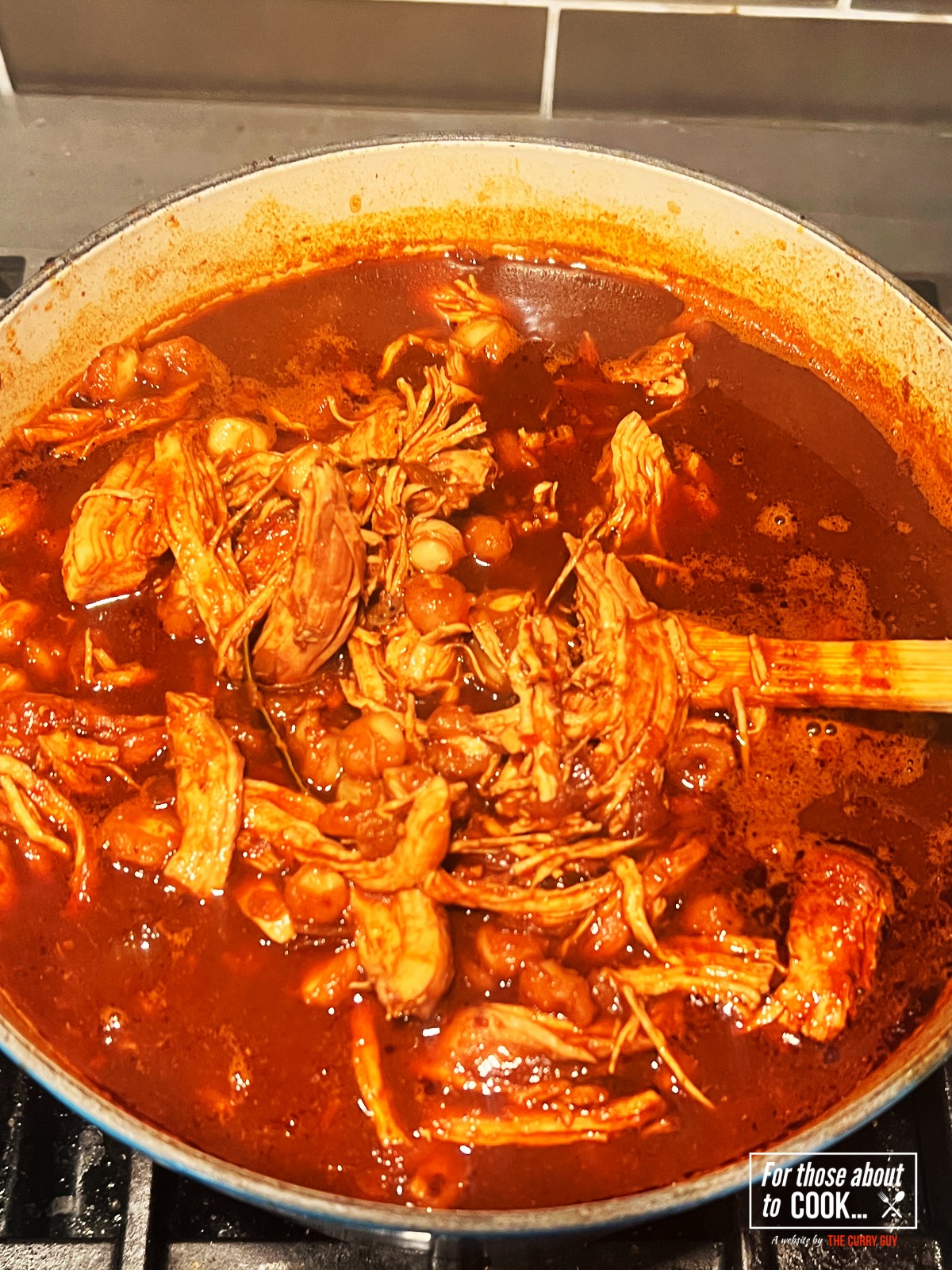 - Step 7: Next, add your blended chillies to the pot along with your chicken. Add your ground spices and bring the pot to a simmer. Cover and simmer for 30 minutes.