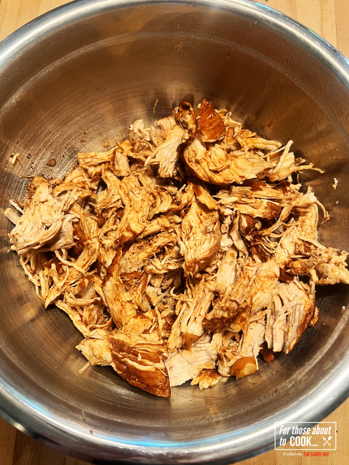 The chicken is done when it easily shreds with a fork and reaches an internal temperature of 75°C (165°F). Avoid overcooking to keep it tender.